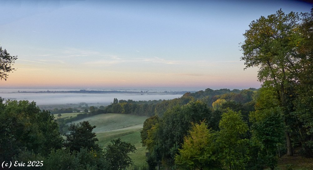Au cours de nos pérégrinations, dans une montée vers un massif forestier, nous avons rencontré un dahut que nous avons essayé de suivre sans y arriver. Une fois au sommet, nous sommes tombés nez-à-nez avec un immense château qui, au fur et à mesure de notre avancée, se transformait en blockhaus multicolore.