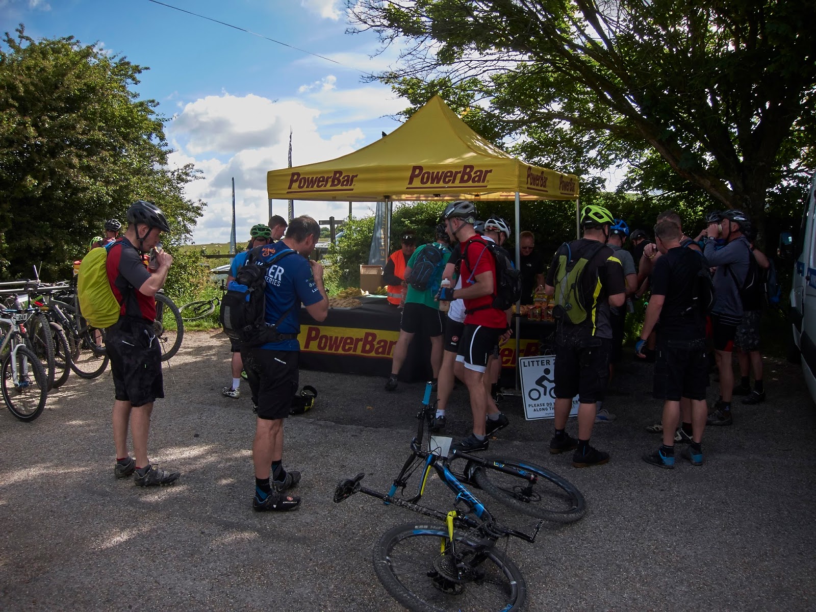 Comme tout est organisé, cela va très vite. Sur ton casque, on te colle une puce pour te chronométrer (pas de casque, pas de rando), tu reçois une plaque d’identification à fixer à l’avant du vélo, quelques brols d’un sponsor quelconque et tu repars à ta voiture. Tout cela en 5 minutes, top chrono.Ensuite, tu t’apprêtes, tu flânes, tu te grattes ce qui te démange. Bref, tu fais ce que tu veux en attendant l’heure du départ.
