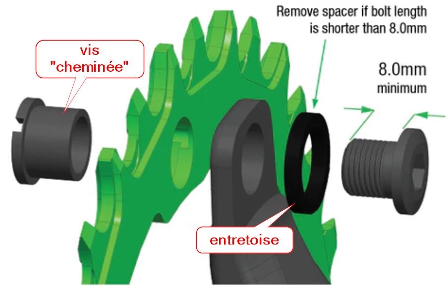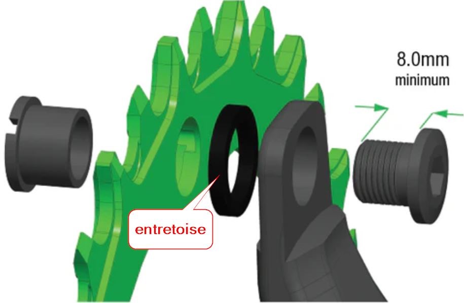 Pour l’une de ces modifications, vous devrez prendre en compte l’adaptation de la ligne de chaîne qui se fait principalement (mais pas que) par l’installation d’entretoises au niveau du pédalier.